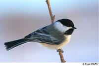Black-Capped Chickadee, common name for a songbird found throughout much of the northern United States and Canada, named for its characteristic chick-a-dee-dee, chick-a-dee-dee call. The black-capped chickadee is popular due to its bold nature and its willingness to take food from the hand of a person. It is the state bird of Maine and Massachusetts.