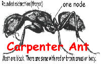 Carpenter Ants are a problem to humans because of their habit of nesting in houses. They do not eat wood, but they remove quantities of it to expand their nesting facilities. This can result in damage to buildings and, if the main structural beams are hollowed out, can result in an unsafe condition.